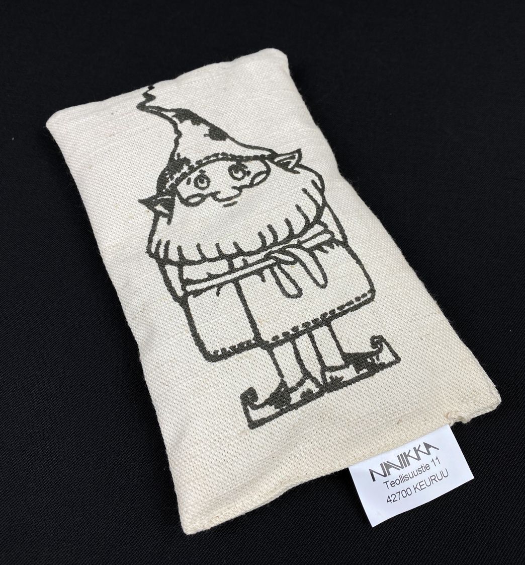 Kauratyyny - lämpötyyny hauskalla tonttusen kuvalla. Lämpötyyny särkeville, jäykille lihaksille sekä kylmätyynynä esim. päänsärkyyn. Pienen kokonsa ansiosta tämä kauratyyny on todella monikäyttöinen.
